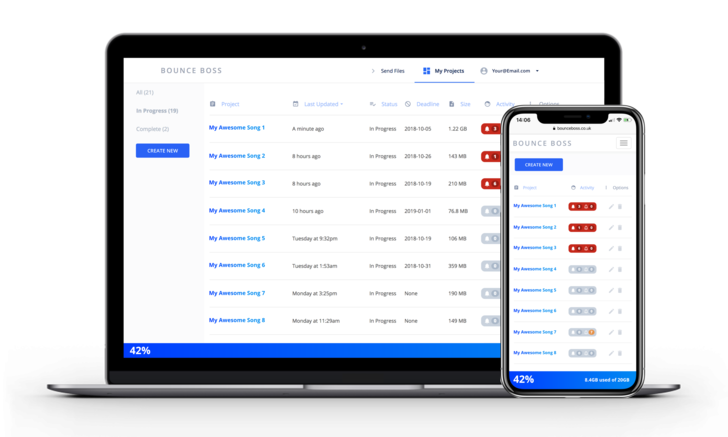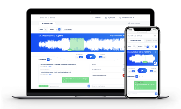 Bounce Boss is a secure collaboration platform for anyone that works with audio or music. Bounce Boss lets you organize, listen and communicate better, so you can complete your audio projects, faster.